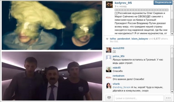 «Российские журналисты Олег Сидякин и Марат Сайченко уже на свободе! Самолет с ними взял курс из Киева в Грозный!», — сообщил российский политик на своей странице в Instagram.