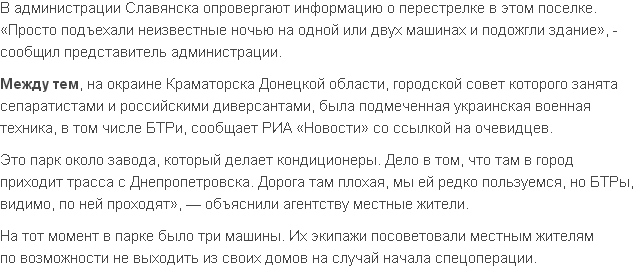 По словам сепаратиста, к направлению города двигаются танки, а пророссийские активисты не хотят крови и настроены на результативные переговоры.