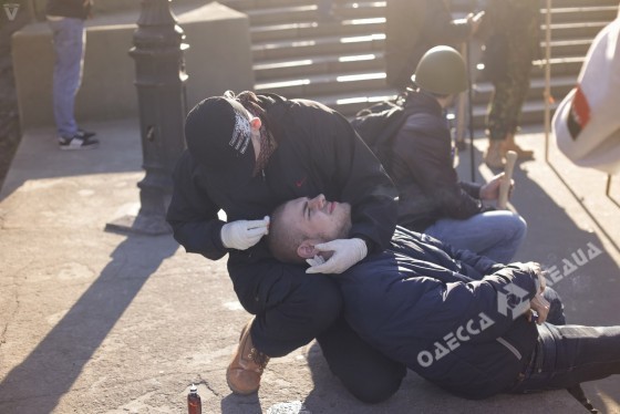 f3cca1f9e9571288a9262e841830f4a0Во время потасовки, которая достоялась в Одессе возле памятника Дюку, пострадало минимум 6 граждан.