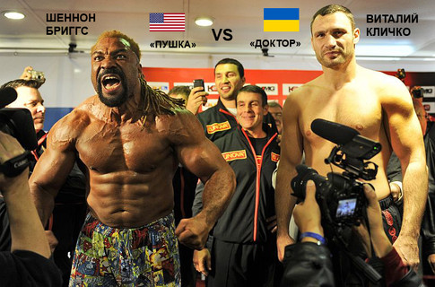 Бывший чемпион мира в супертяжёлом весе американец Шеннон Бриггс посетил не только пресс-конференцию Владимира Кличко и Алекса Леапаи, бой который состоится сегодня вечером, но и официальную процедуру взвешивания, во время которой вёл себя вызывающе.