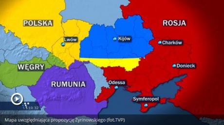 Журналисты польского канала TVP1 сообщили, что заместитель Председателя Государственной Думы, лидер ЛДПР Владимир Жириновский предложил Польше требовать референдума по приверженности к Польше в пяти западных областях Украины: Волынской, Львовской, Ивано-Франковской, Тернопольской и Ровенской.