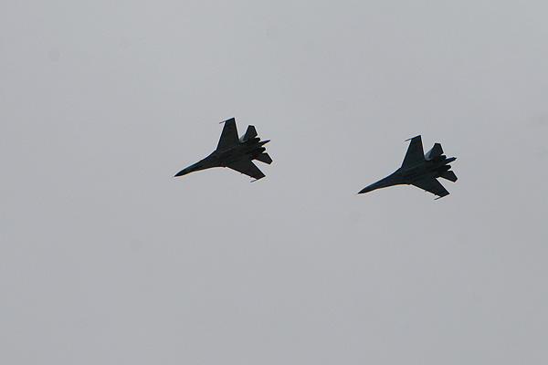 Также истребители были замечены над Донецком, Днепропетровском и Луганском. Пользователи социальных сетей предполагают, что в небе летали Су-27, или МиГ-29.