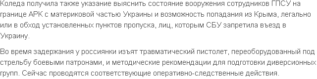 1397037032-6000-mariya-koledaСегодня, 9 апреля, сотрудникам Службы безопасности Украины удалось задержать 22-летнюю гражданку Российской Федерации, которая подозревается в шпионаже и выполнении заданий спецслужб для дестабилизации ситуации в южных областях Украины.